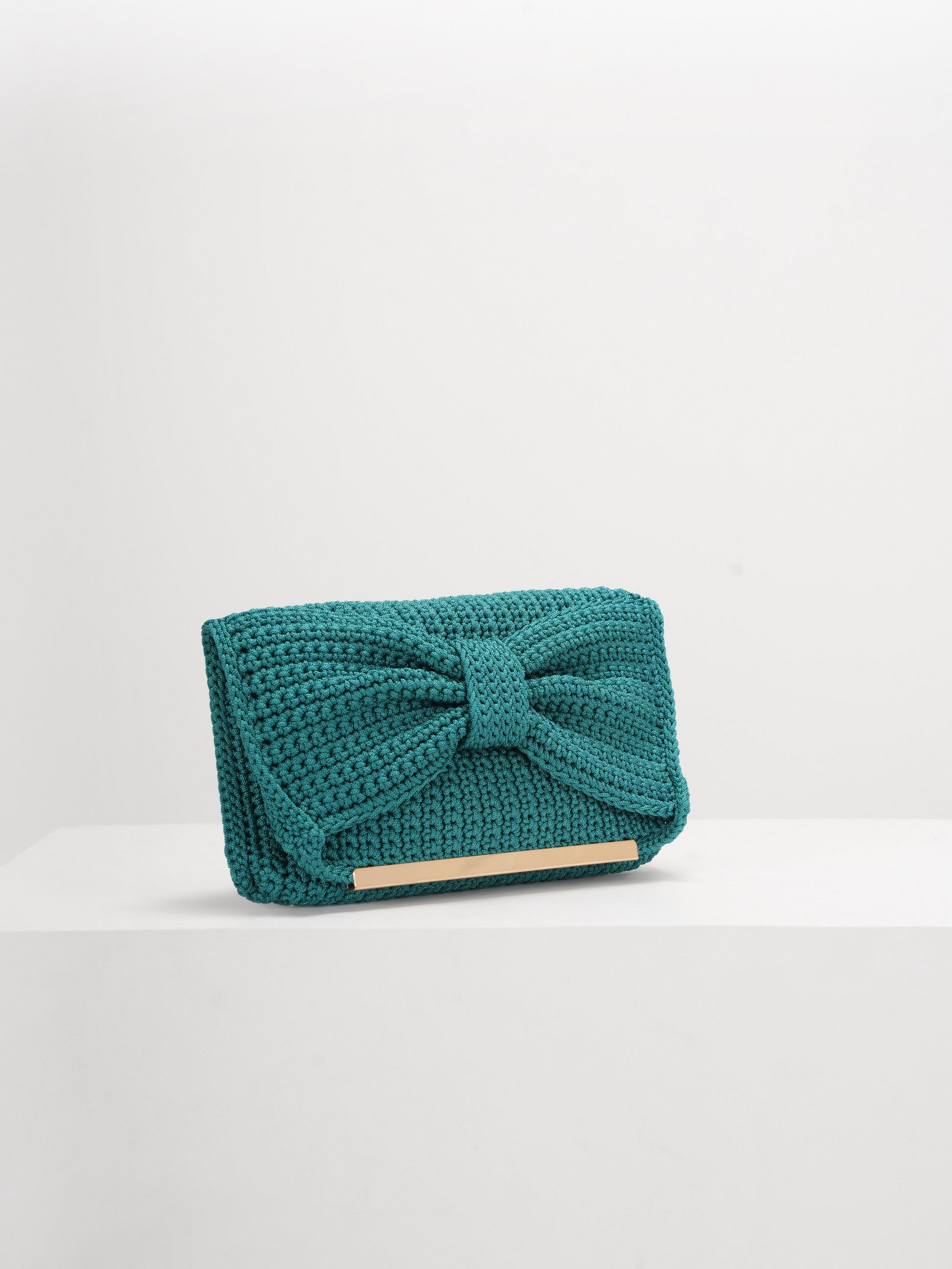 This clutch is crafted out of high-quality yarn with a beautiful crochet pattern, which gives it a rich texture to the tone of the clutch. A lovely bow decorated with slim metal detail takes this piece from traditional elegance to a modern classic. The Teal Bow Clutch is an ideal accessory for a casual brunch or an evening event - it's versatile, stylish, and easy to wow the crowd.